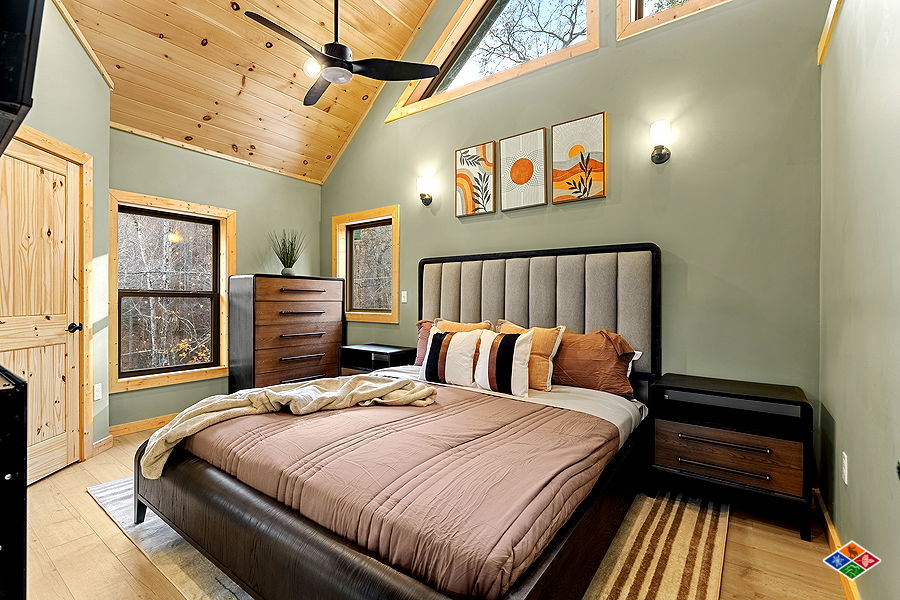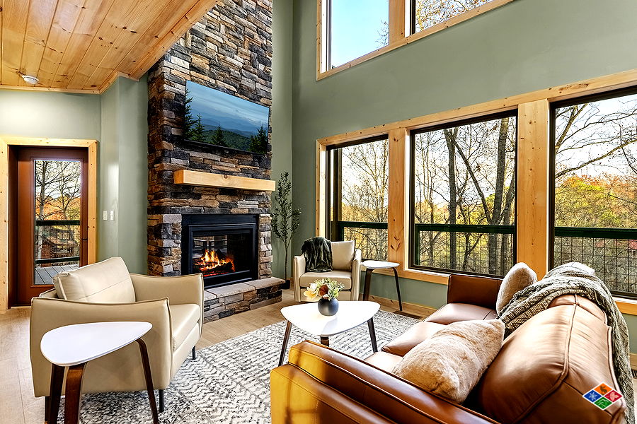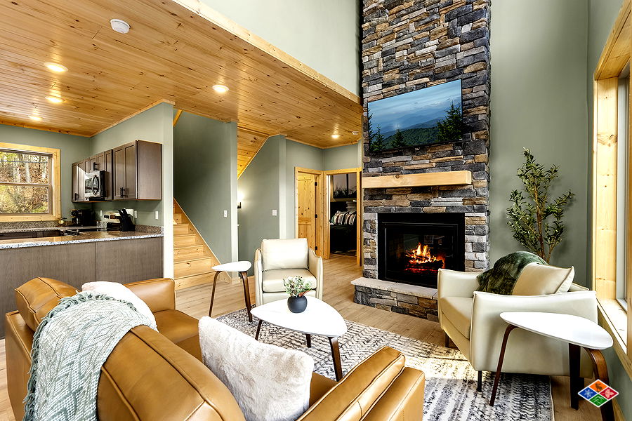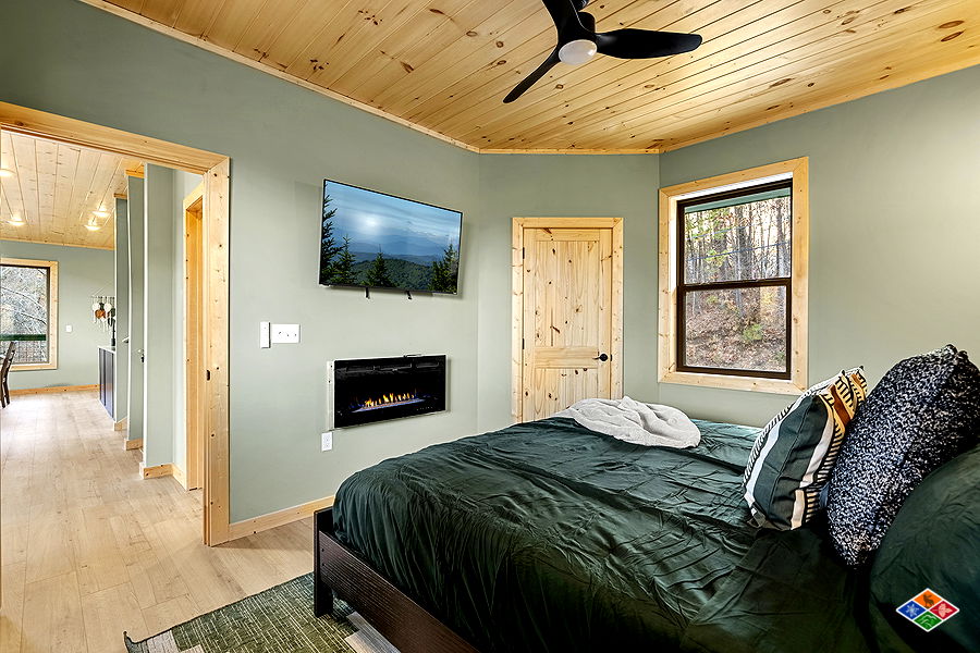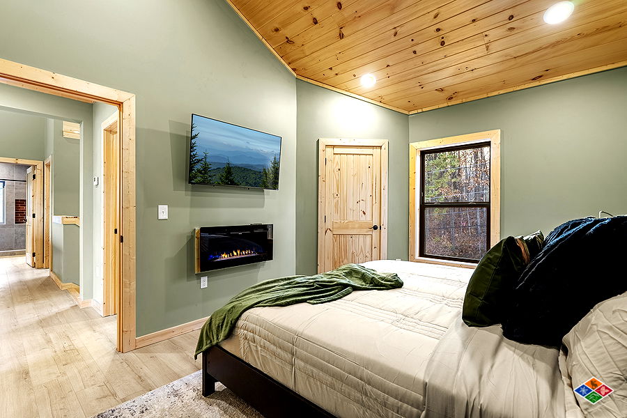 Fireside Suites: All four bedrooms serve as private sanctuaries, each featuring its own electric fireplace for ambiance and warmth.