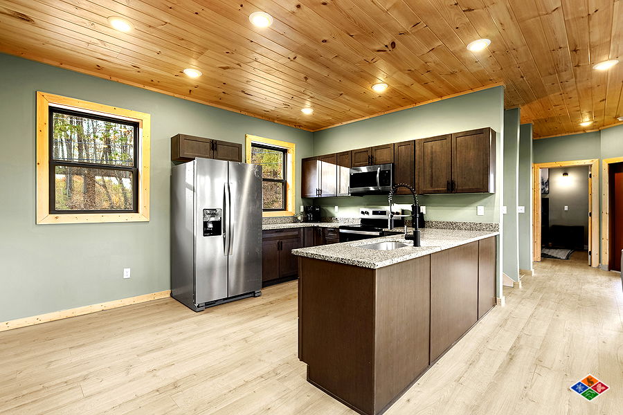 Gourmet Setup: A bright, modern kitchen features stainless steel appliances, granite countertops, and a spacious island.