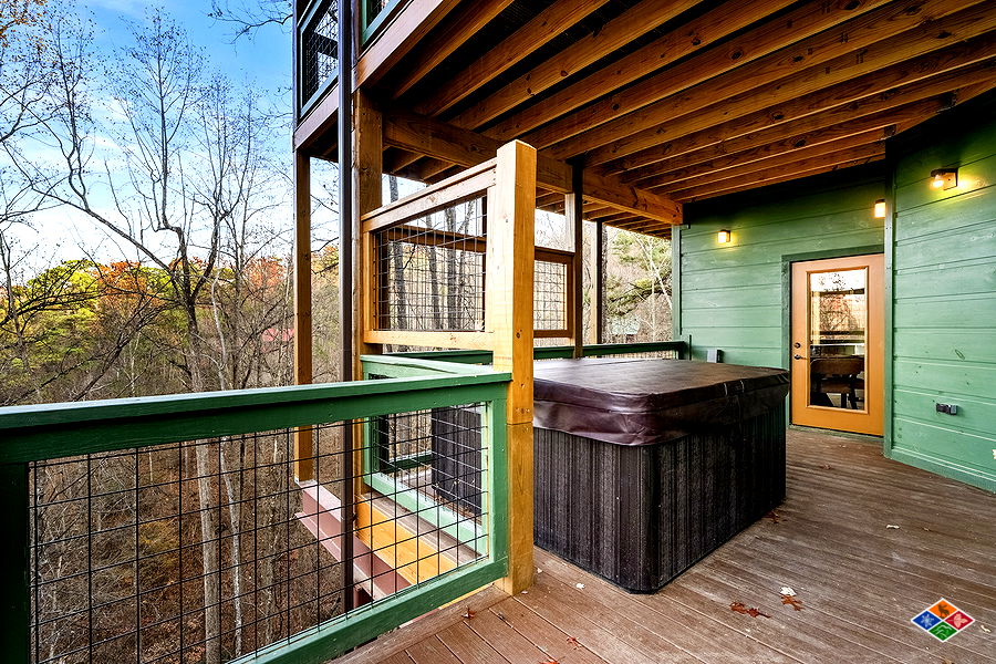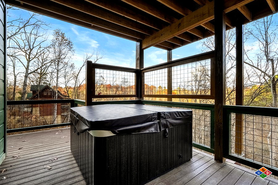 Private Hot Tub: Soothe tired muscles in the bubbling hot tub located on the secluded back deck.