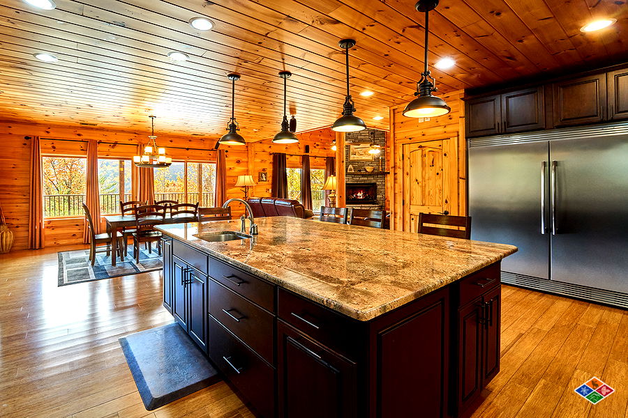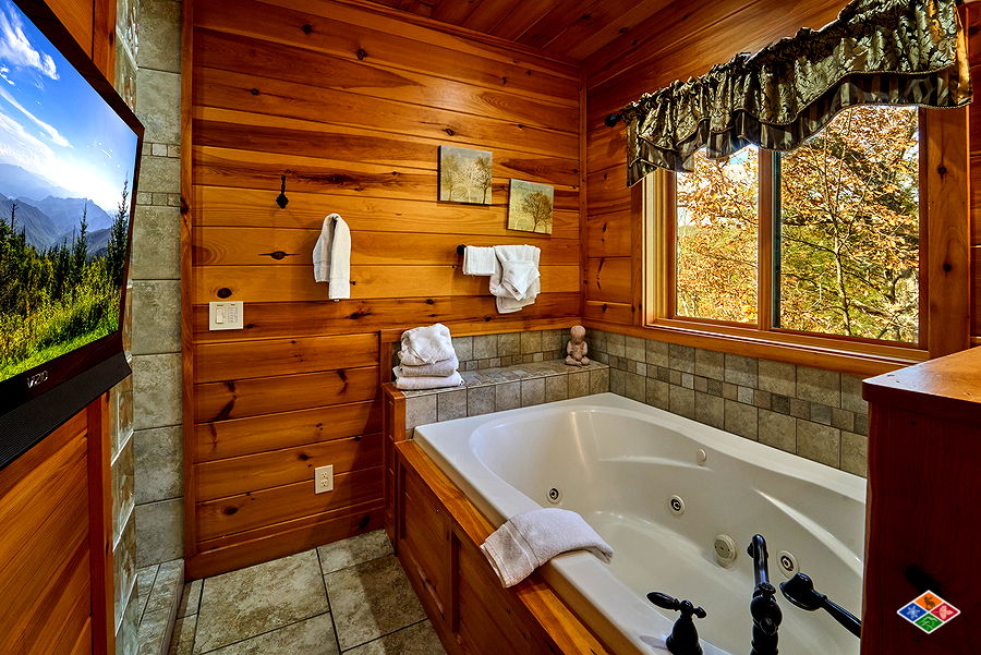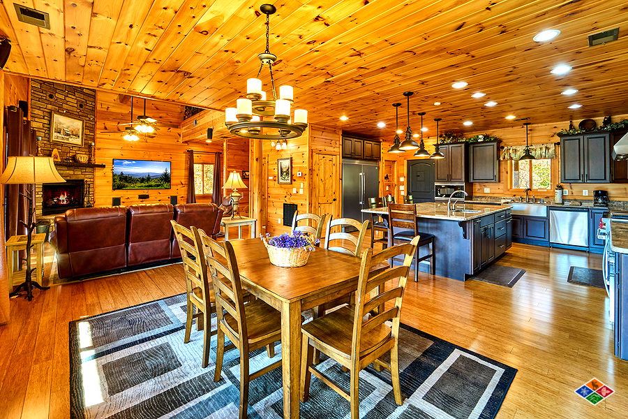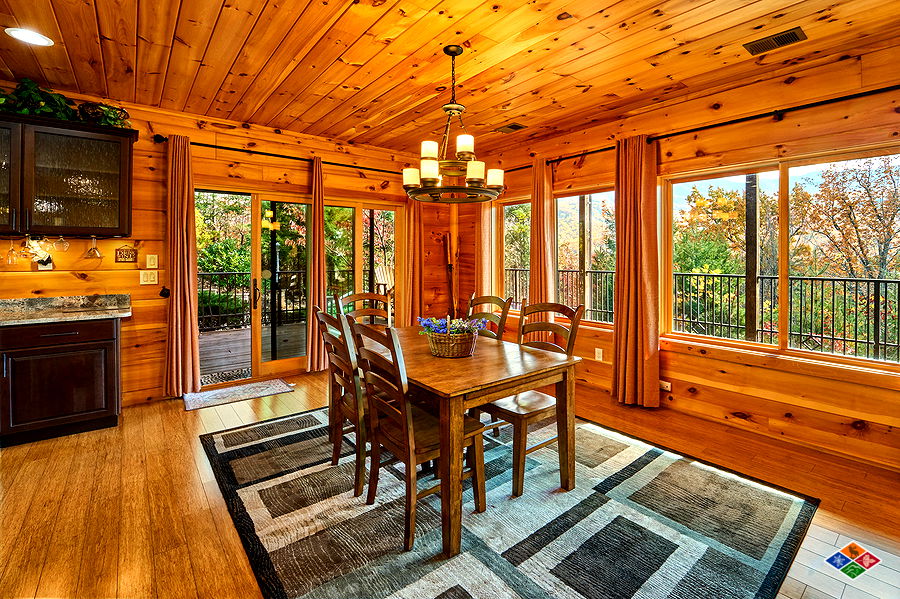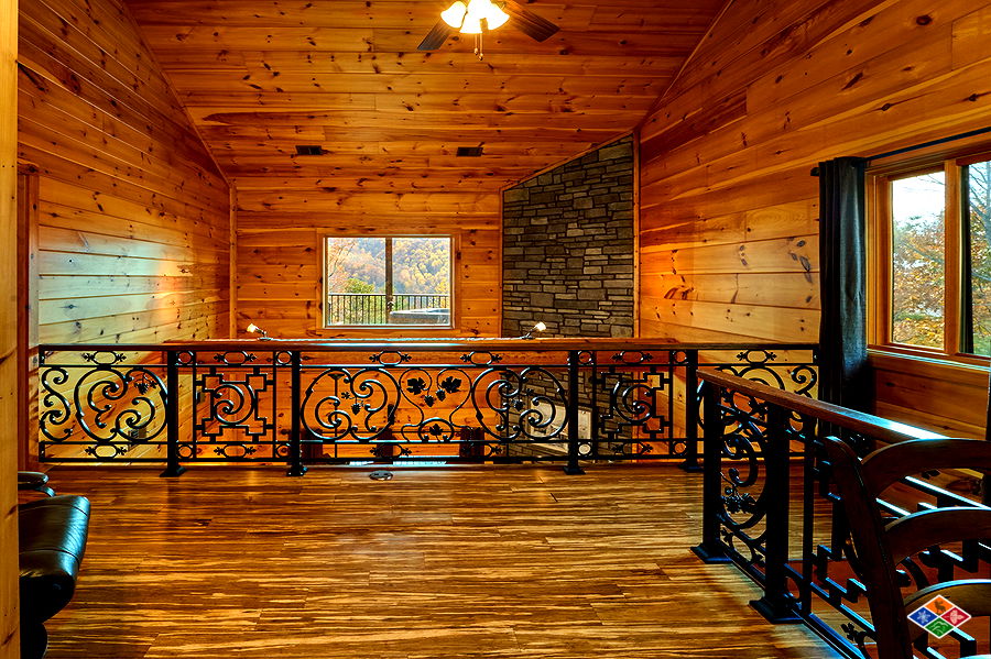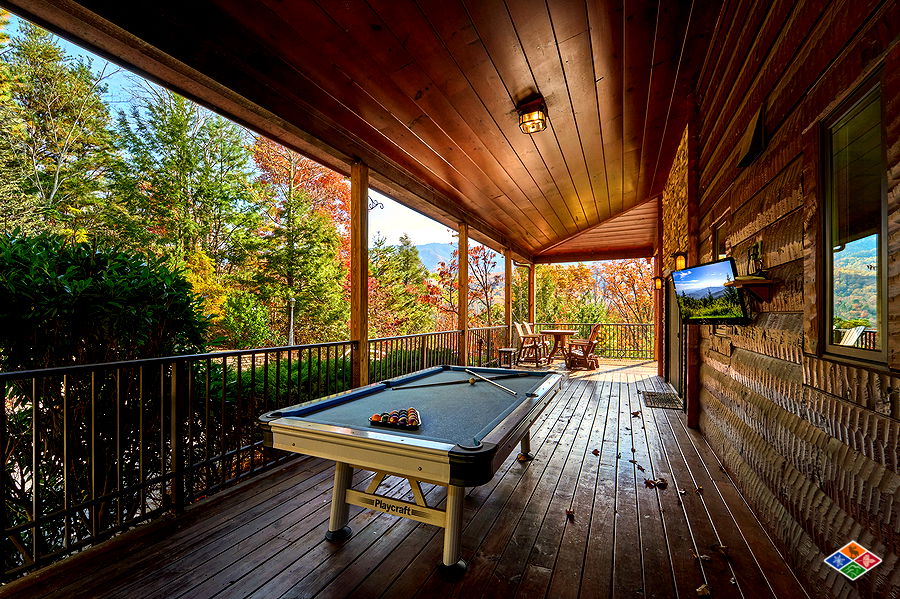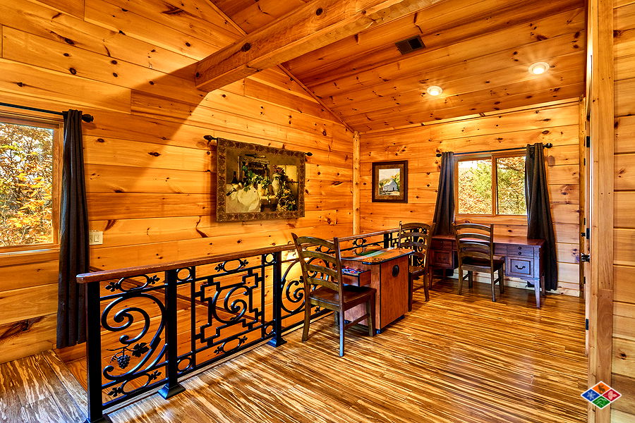 Enjoy your vacation with your special someone in your own private luxury cabin with 180 degree views of the mountains. You will enjoy the large gourmet kitchen with commercial grade appliances, luxury master suite with fireplace and spa style bathroom with shower jets and Jacuzzi tub, 2 covered decks with outdoor lounge chairs and porch swing, a game area in the loft with table top arcade.
