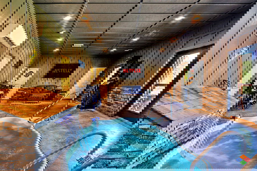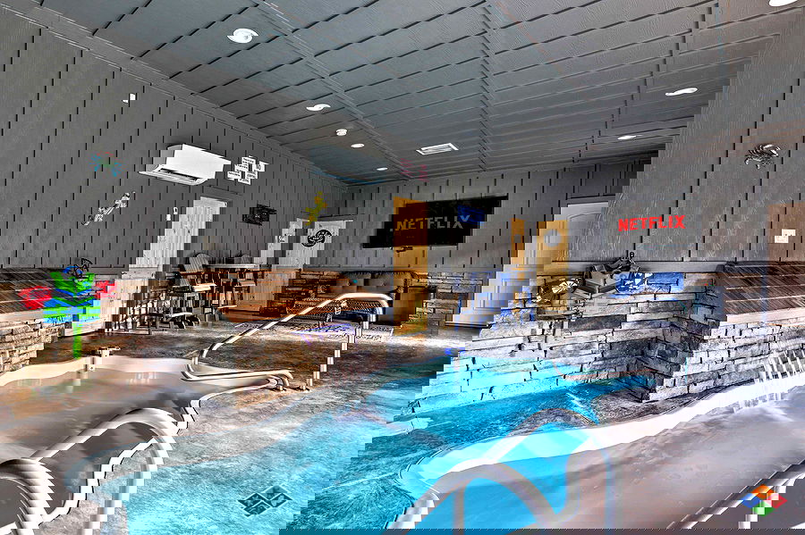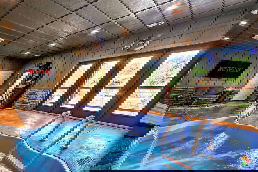 Romantic getaway? You found the perfect cabin for you and your special someone - and there is even a sleeper sofa and 1/2 bath if you want to bring the kids. With a private heated indoor pool, arcade games, foosball, darts, hot tub, fire table on covered deck...You may never want to leave!